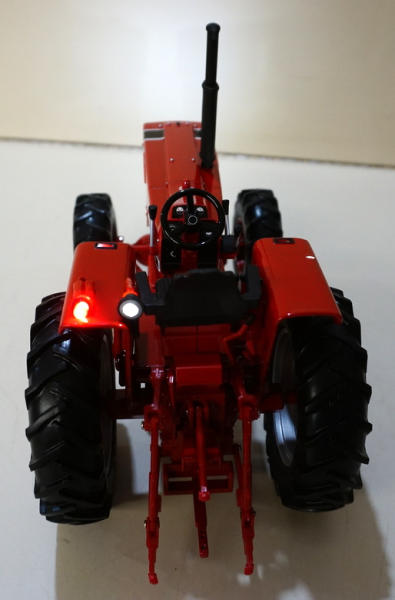 Prestige tractor that has been customized with LED headlights, fender lights & red flashing safety light, has a small toggle switch on the side, comes with the original box so it is shippable for our online buyers