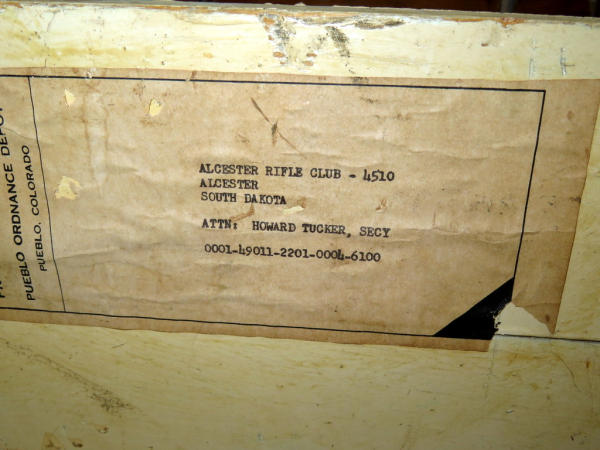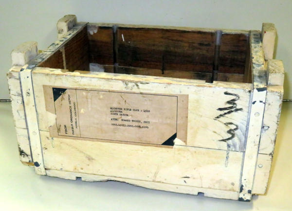 very cool local piece with the original paper label w/Attention to Howard Tucker; other side is stenciled for .30 cal ammo w/420 rounds; neat piece; 15"x11"x8"