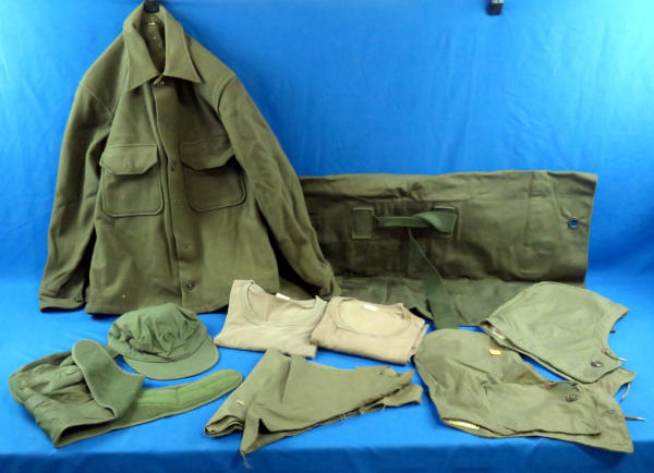 includes shirts, canvas bag, handkerchiefs, hoods, hat, & more; all look unused; buying all for one money