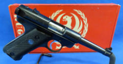 appears new & unfired; 5.5" BBL; plastic checkered grips; box has some wear and has no insert; SN#104590