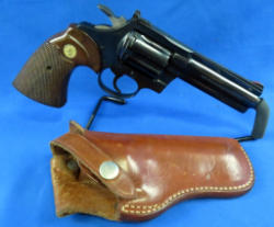 4" Vent-Ribbed BBL; has been used and slight wear; front red ramp sight; wood checkered factory grips; includes Bianchi leather holster; swing-out cylinder; TG, TH; SN#N04216