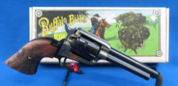 4.75" BBL; mint & unfired; great engraved Buffalo Bill wood grips; case hardened receiver; box has great graphics & color; nice looking gun; SN#3PH133355