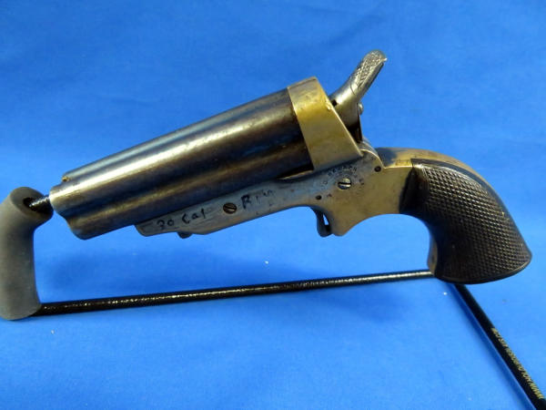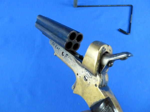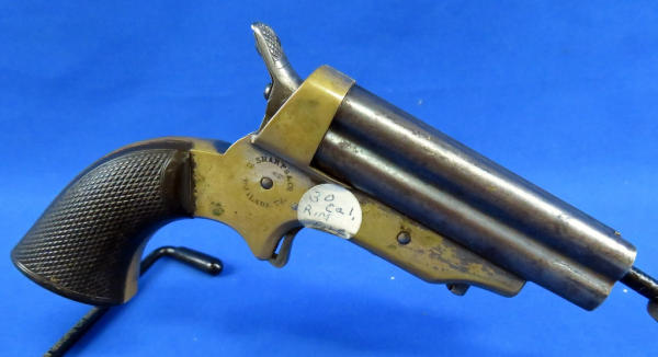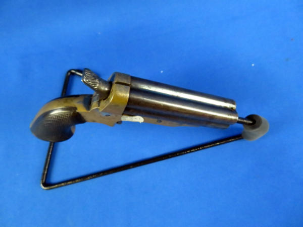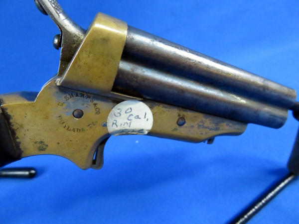 3" Barrels; has quite a bit of finish wear and some marker writing on brass frame; looks like original grips; barrels slide forward easily; spur trigger; SN#5695; NO FFL transfer needed