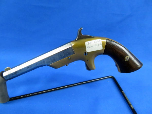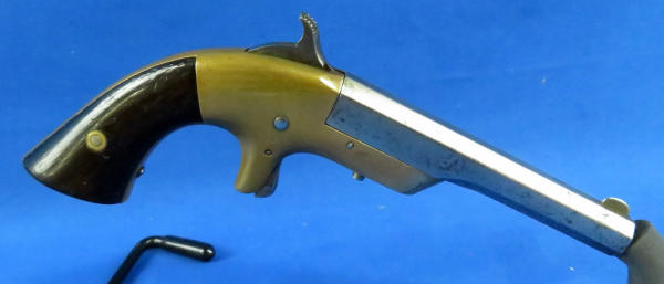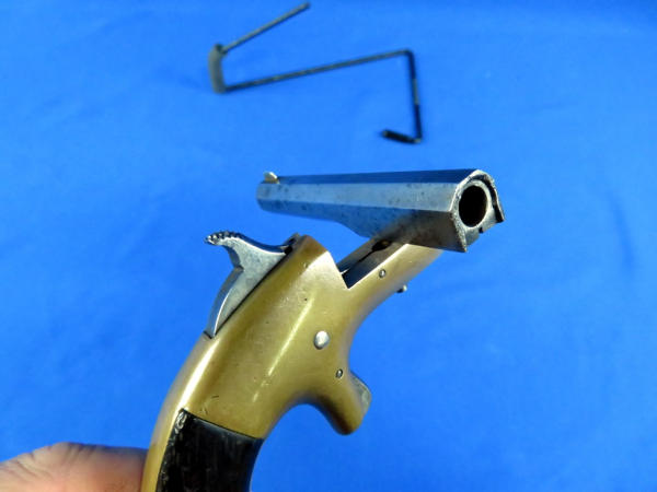 not sure on maker; only marked with SN#5266 on frame & barrel; 3-5/8" Oct. nickeled barrel; brass frame; wood grips; spur trigger; NO FFL Transfer needed