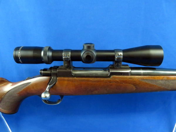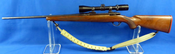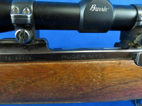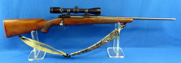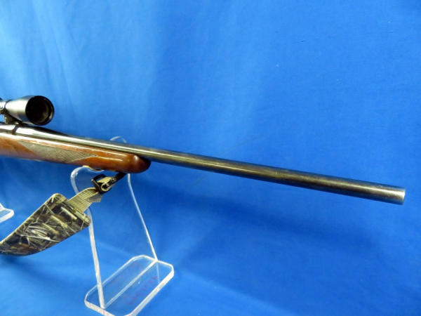 22" BBL; smooth action; wood is nice; bluing is thinning on barrel and scratched up on bottom receiver plate; Burris 3x-9x Full Field II scope is clear; camo rubber sling; nice set-up; SN#70-44925