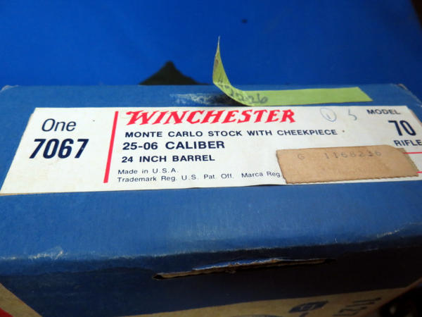 24" BBL; Monte Carlo Stock w/Cheekpiece; has some field marks on wood; bluing is 90% or better; has target specs taped to left side of stock; Tasco 2-7x32 scope is clear; action needs to be lubed but not bad; SN#G1168236