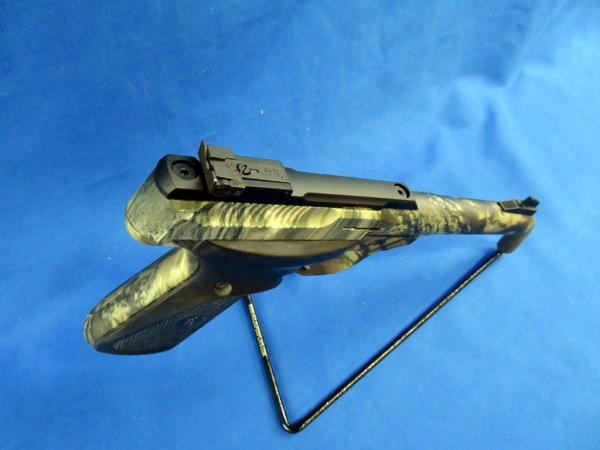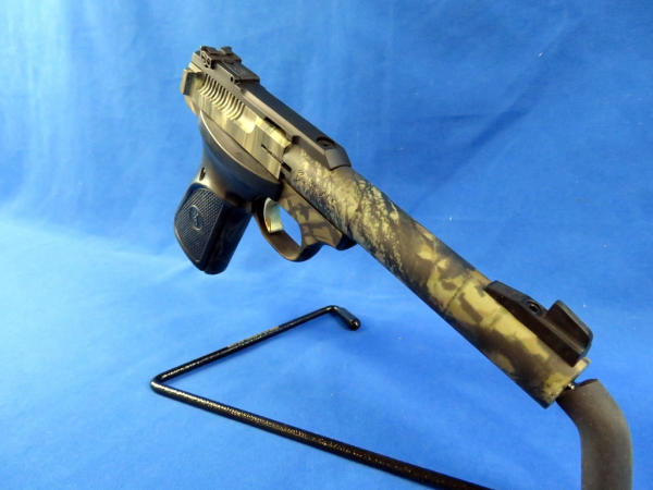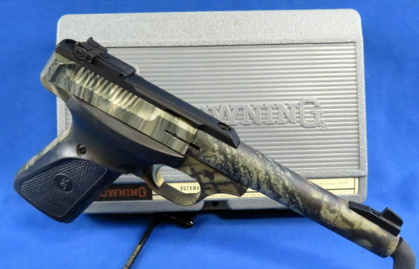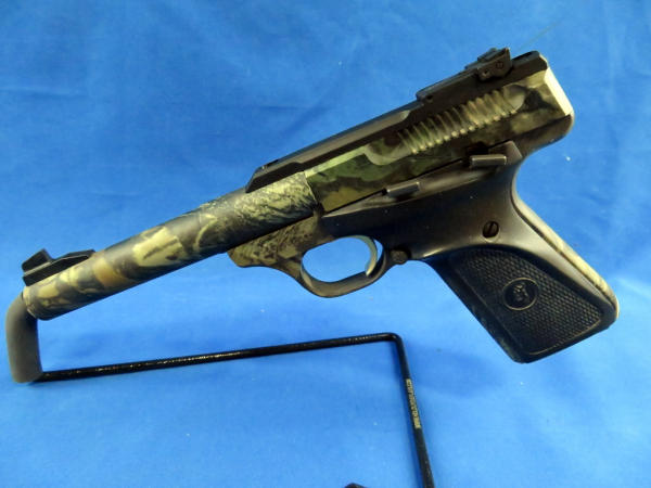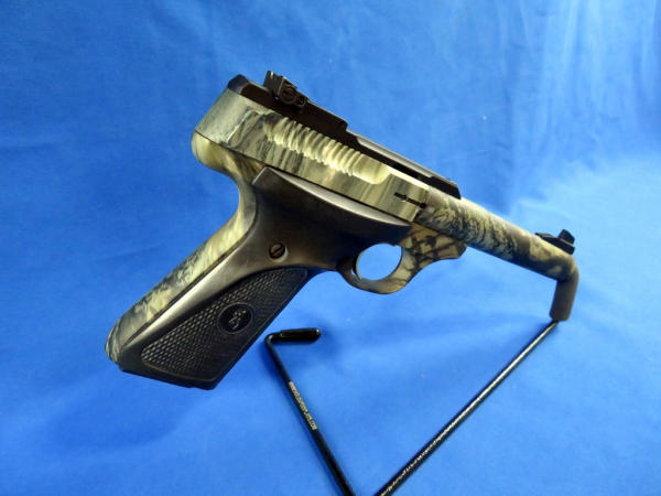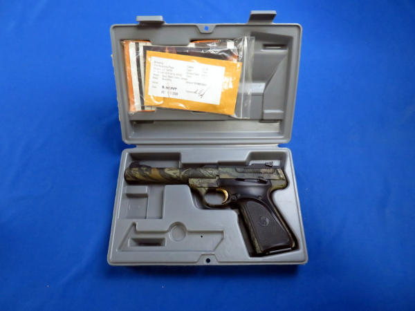5.5" barrel; factory rubber grips; factory plastic case; gold trigger; great camo look; SN#515MZ12264