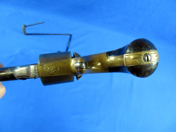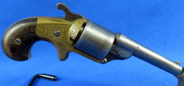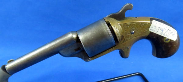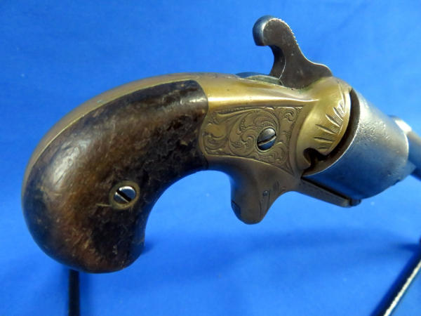 3.25" BBL; fancy engraved brass receiver; wood grips; has some pitting; spur trigger; SN#19938; No FFL transfer required