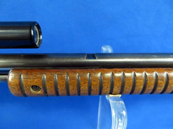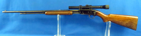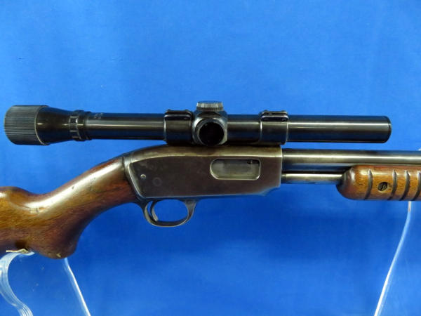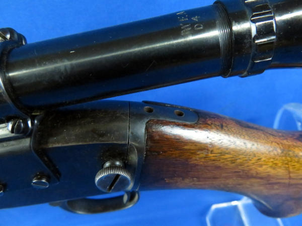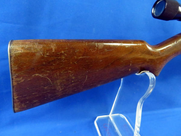 24" BBL; bluing is thinning; smooth action; wood is solid w/finish loss; Weaver D4 scope is clear; SN#156754