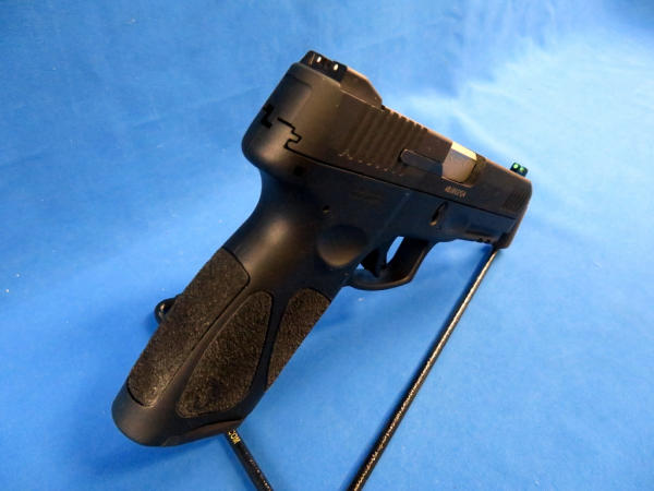 4" stainless barrel; black synthetic body; fiber optic front sight w/rear night sights; 2-magazines; been fired but overall terrific shape; SN#ABJ882104