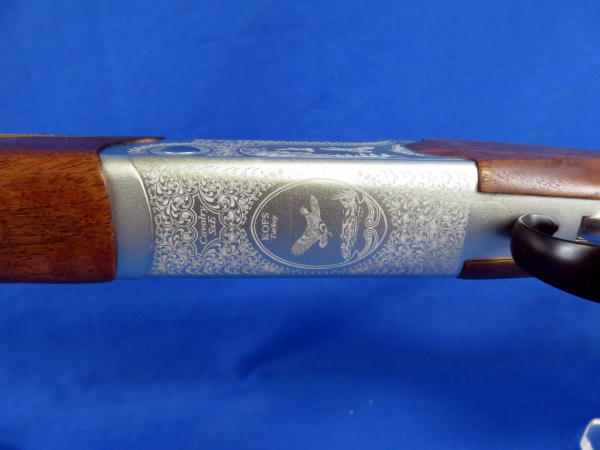 26" Vent-Ribbed BBL; mint & unfired; fancy engraved stainless receiver; several chokes; 3" chamber; SN#21060236