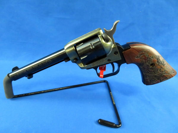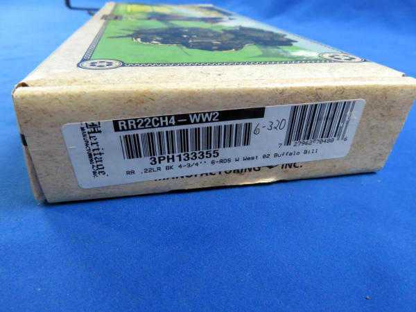4.75" BBL; mint & unfired; great engraved Buffalo Bill wood grips; case hardened receiver; box has great graphics & color; nice looking gun; SN#3PH133355
