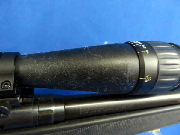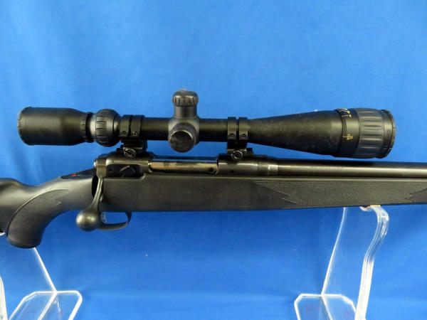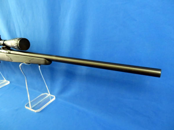 26" BBL; black synthetic stock; appears new & unfired; BSA Contender scope w/sun shade; scope has a sticky residue on it; very heavy barrel; smooth action; no sights on barrel; AccuTrigger; SN#G309157