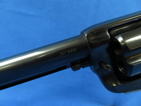 gun looks near mint & unfired; hard rubber checkered grips; nickel plated lower frame; 4.75" BBL; has a small pea size spot on left side of muzzle with bluing loss; SN#E117907