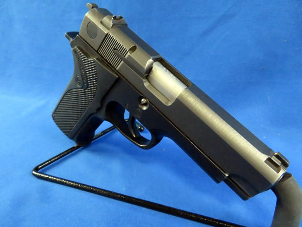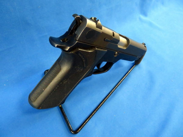 4" Stainless Barrell; front night sight; has been fired and has some scratches on frame & slide; plastic checkered factory grips; two magazines; SN#VBH6309