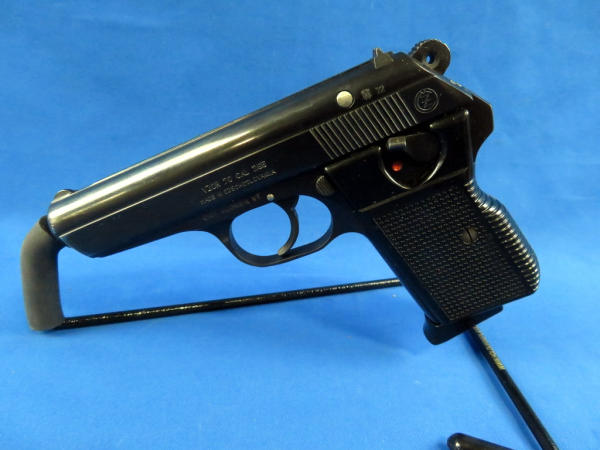 3.75" BBL; bluing overall is nice; hard plastic factory grips; 2-magazines; leather holster; made in Czech; has import mark; SN#J83581