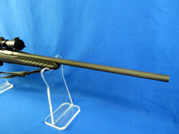 22" BBL; black synthetic stock; appears mint & unfired; Burris scope is very clear w/flip open caps; sling; original box; removable magazine; nice set-up; SN#690-24801