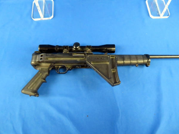 18" BBL; has surface rusting on barrel; black synthetic stock w/pistol grip and folding stock; Armsport Star 4x32 scope is clear; removable magazine; could use a cleaning; SN#112-63018