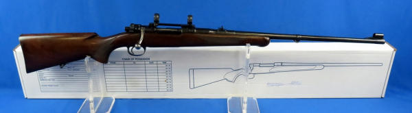 24" BBL; sporterized military firearm; German Mauser Action; wood is very nice w/good color and few marks; bluing is nice; smooth action; NO import marks; includes a white "evidence" gun box; SN#113358