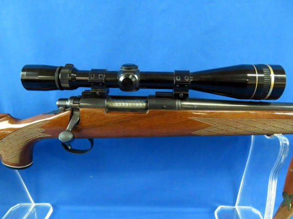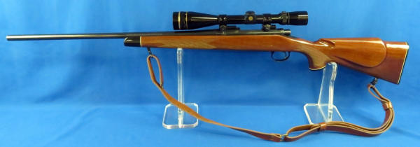 24" BBL; smooth action; overall condition is very nice; stock has great gloss; very minor blemish in the bluing by the SN# is about the only flaw I can see; Leupold Vari-X-III 6.5x20 scope is very clear; leather sling; another great set-up; SN#A6755534