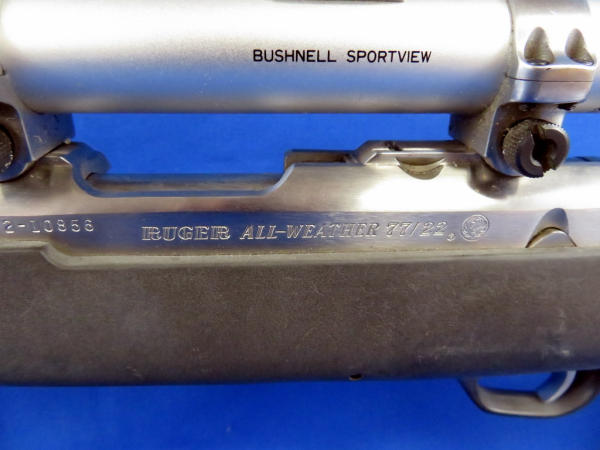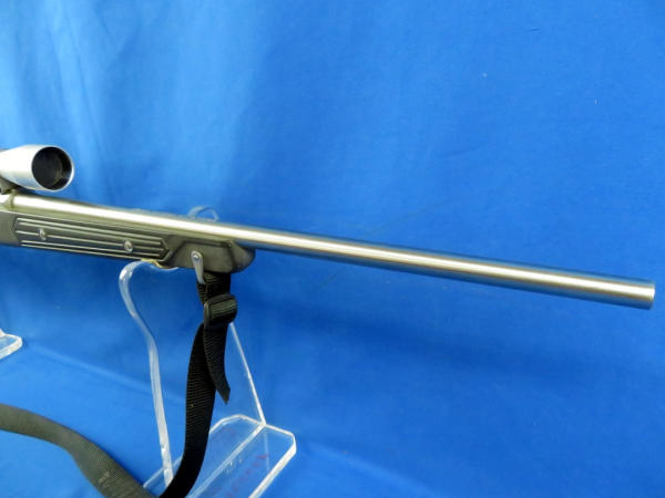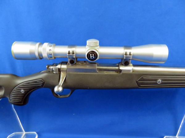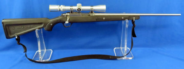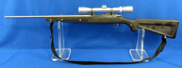 20" Stainless barrel; Bushnell Sportview scope; nylon sling; smooth action; removable magazine; black synthetic skeleton stock; SN#702-10856