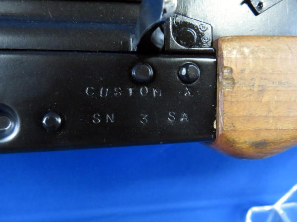 16" BBL; wood forearm w/wire style stock; no magazine; stamped Akron, IA & Custom X; painted black; SN#3SA