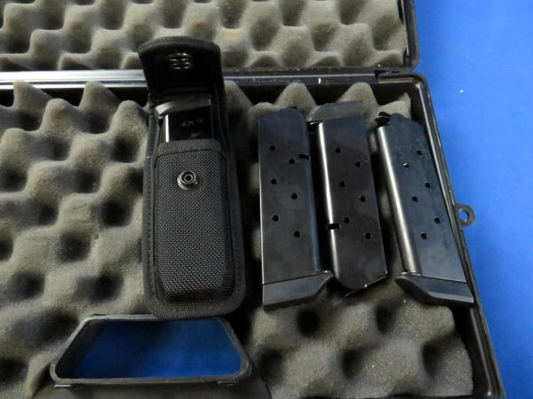 5" BBL; flat black finish frame; Hogue Rubber Grips; 5-magazines!; aftermarket hard plastic case; looks like new; SN#RIA1050868