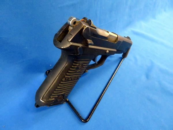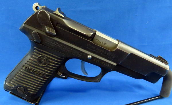 4.5" stainless barrel; has been used; has some bluing loss and minor rust spotting on stop of slide, should clean up; night sights; SN#307-59531
