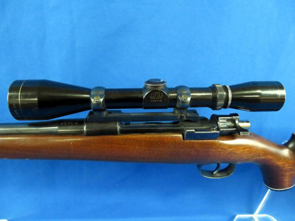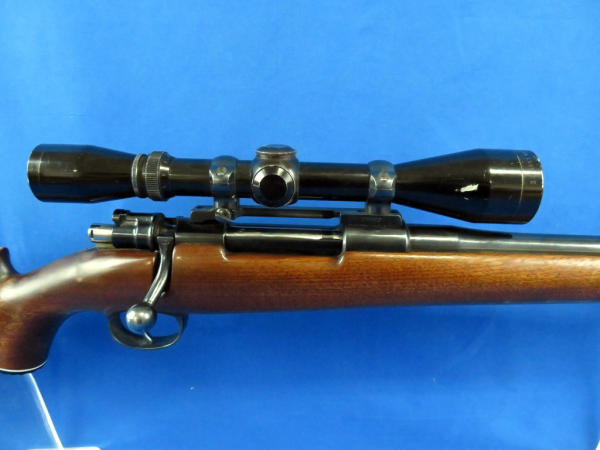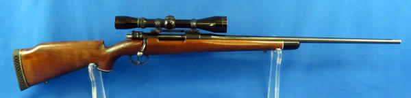 24" BBL; very smooth action; very nice condition; no maker or model that I can see or SN#; barrel is marked .257R; older Leupold 3x9 Vari-X II scope is clear;