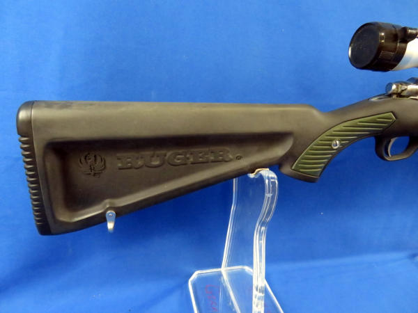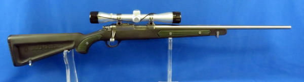 20" Stainless Barrel; smooth action; skeleton stock w/dark green accents; Simmons scope; removable magazine; SN#701-04649