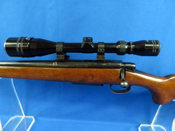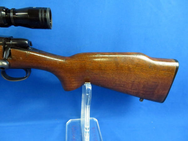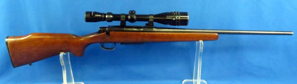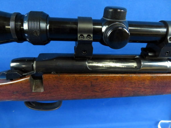 21" BBL; has left handed bolt but right side eject, must have been custom made for a lefty; Tasco 4-16x40 scope; smooth action; wood is nice w/a few field marks; removable magazine; SN#6009601
