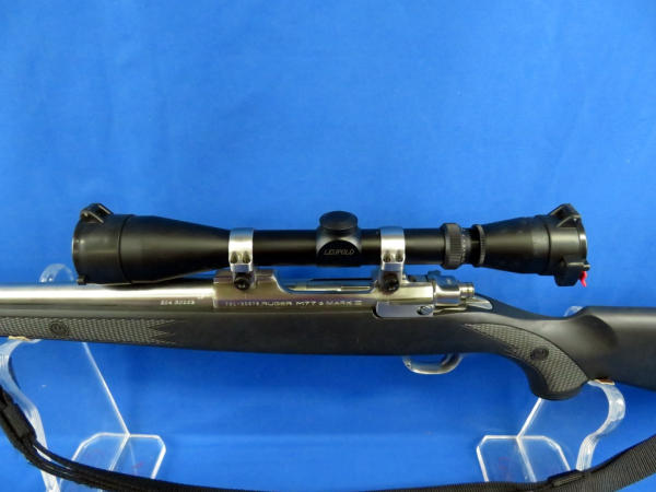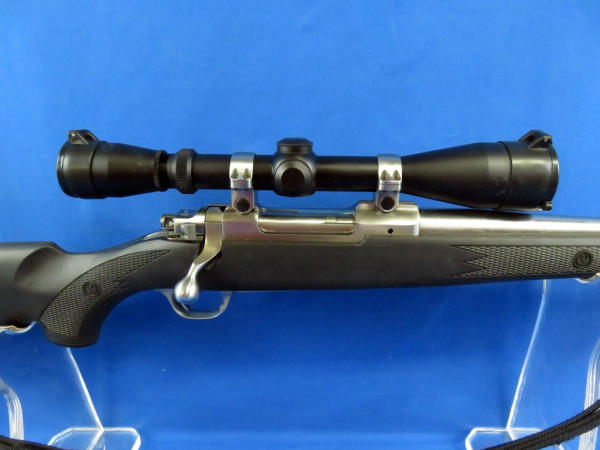 24" Stainless barrel; very smooth action; black synthetic stock; overall like new condition; Leupold 4-12x40mm scope is very clear; nylon sling; great set-up; SN#791-39878