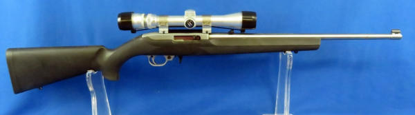 18" Stainless barrel; Bushnell sportview scope; black rubberized stock; removable magazine; nice shape; SN#245-63403