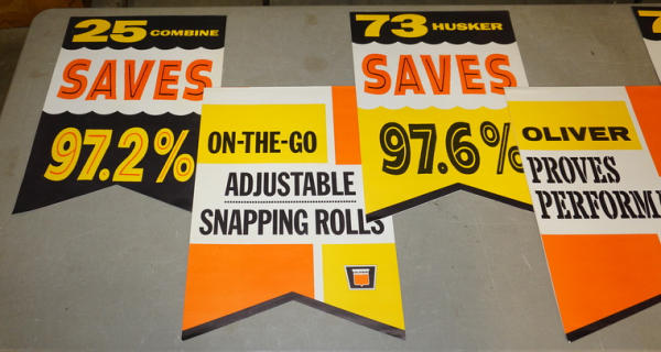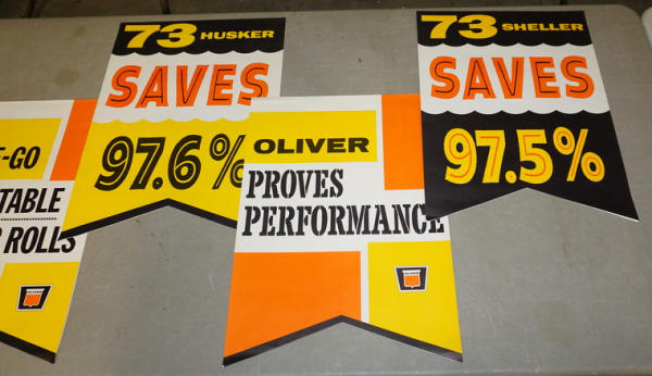 each pennant is folded over heavy paper, 20"x14", designed to hang over a piece of twine to make a display, all NOS and never used, sells as a set; super color