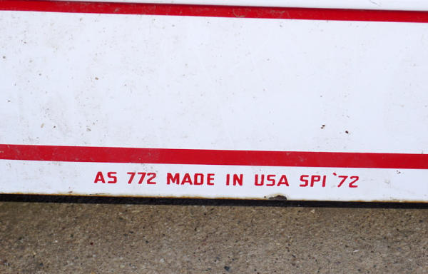 12' long when assembled, in two pieces, some light edge wear and around the grommets, but overall a very nice and clean sign; dated 1972; no shipping, local pickup only in the next 30-days