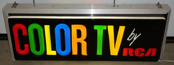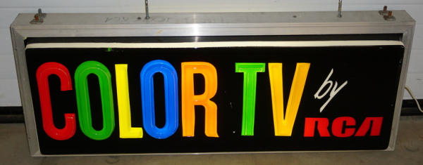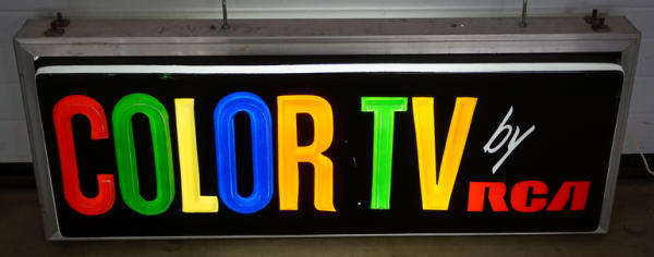48"x19", one side is excellent, other side is nice, but has a small crack in the plastic, lights up and works, pretty neat sign with lots of great color