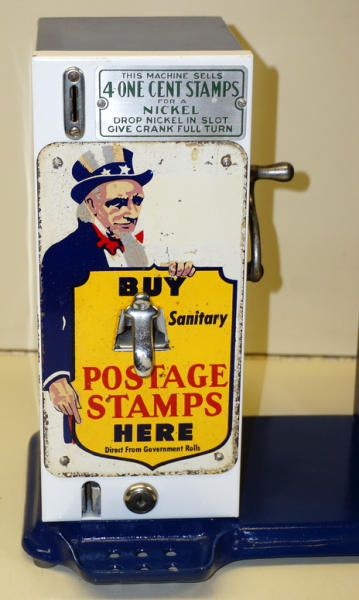 most of the machine has been repainted, original paint signs on the front, 13" tall, 15" wide, cast iron base