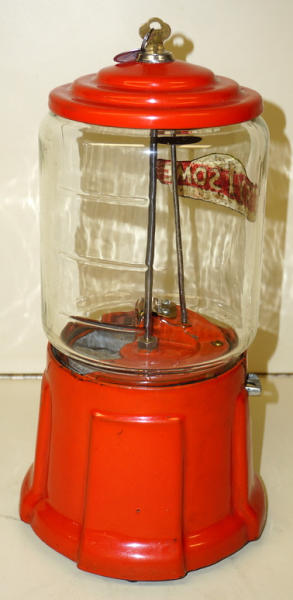 matches lot #101, just a little smaller and in red, nice original, great original label on the globe and has the key, 14" tall