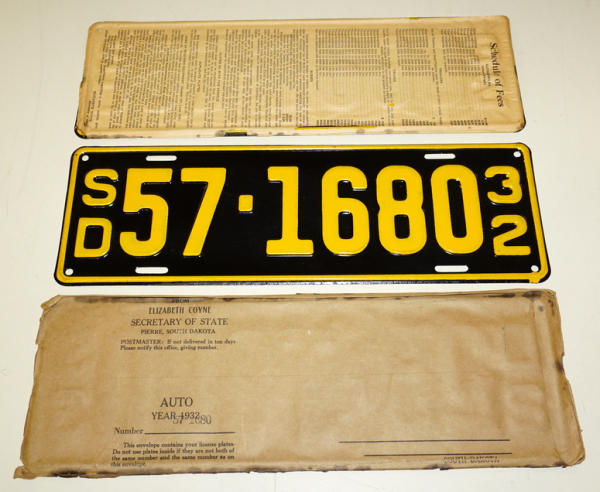 Plates are mint and unused, one has the original paper still on the face that should come off with a little work; if you have a '32 Hot-Rod, this would be a perfect set of plates!