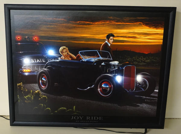 has real LED lights in the headlights, 25"x19", works, some light wear