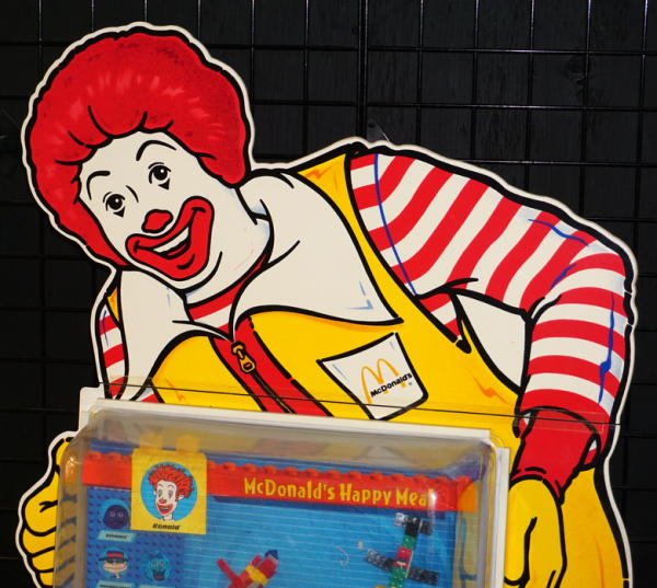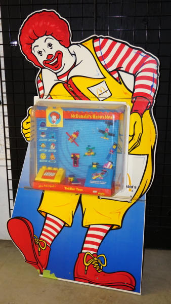 about 5' tall, wood & plastic, has some wear from use, but overall good condition; no shipping