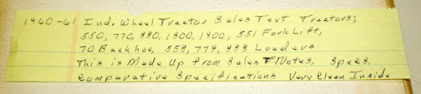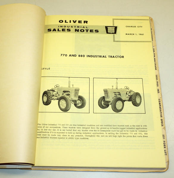 includes 550, 770, 880, 1800, 1900, plus forklifts & backhoes along with equipment & comparisons, really clean inside, cover has some wear, probably 100 pages or so