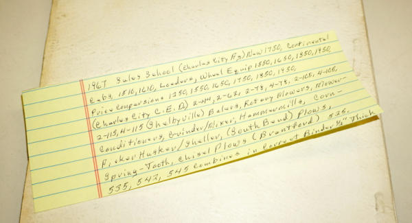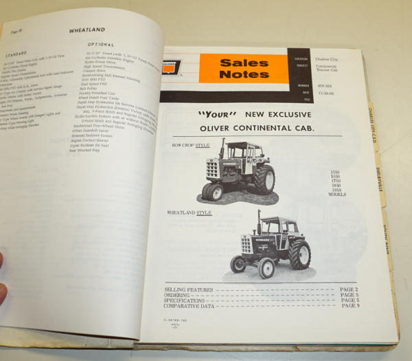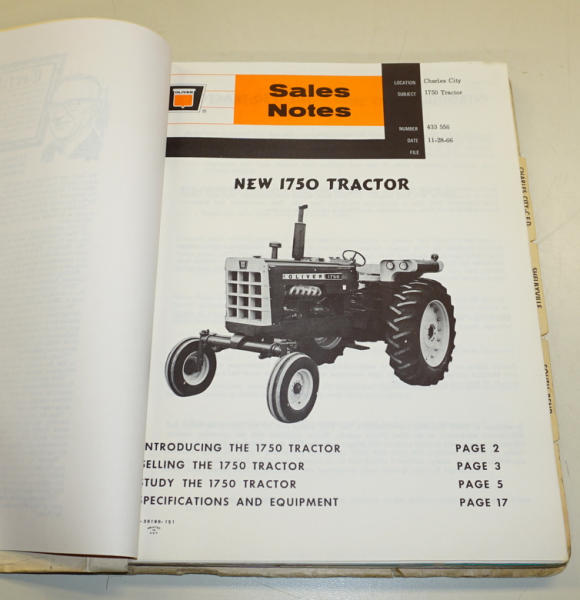 over 1/2" thick, broken down by the different plants, includes sales notes and brochures, contents are clean, binder has some wear