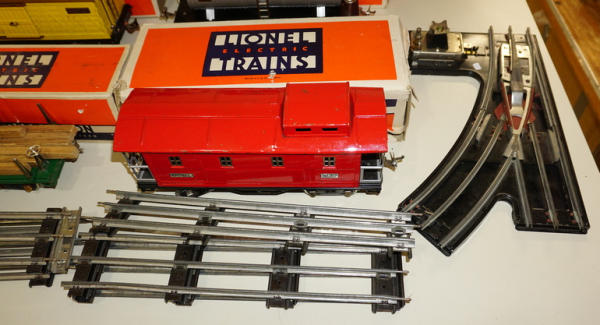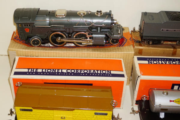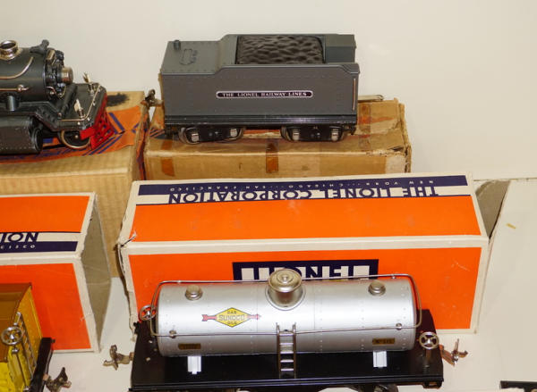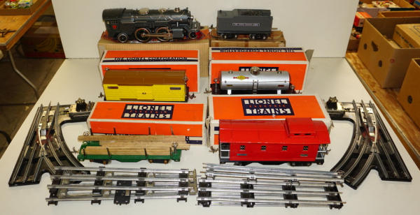 large & impressive Set, Engine is #385E, has some general play wear, but overall really clean and nice; Lee Nelson obtained this from the original owner and comes with a nice letter explaining the history of the set; boxes are included for the pieces, but boxes have some general wear, highlight of the auction!