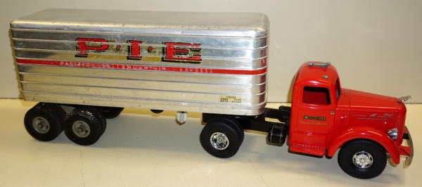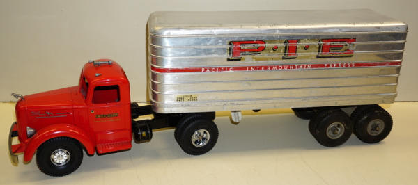 Cab has been restored, has a paint chip on the driver's door, trailer is a played with original, would make a nice piece to finish restoring or customize