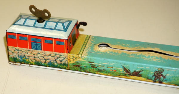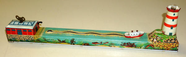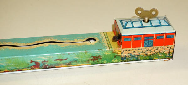 15" long, windup works, did not test the battery light, nice design and graphics, some light wear