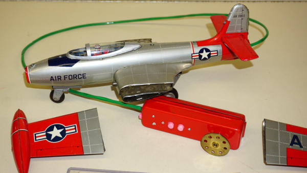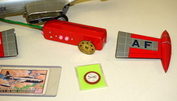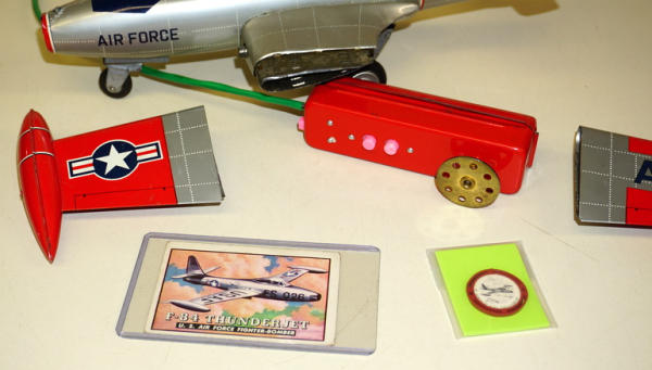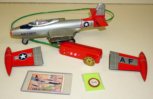 13" long, does not work, includes some memorabilia for display of the real jet, great colors
