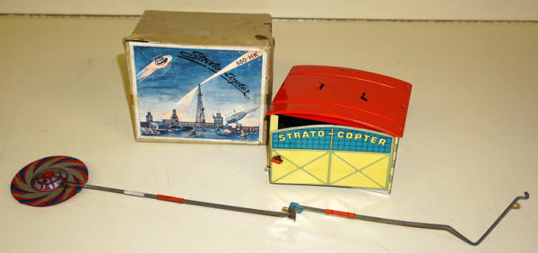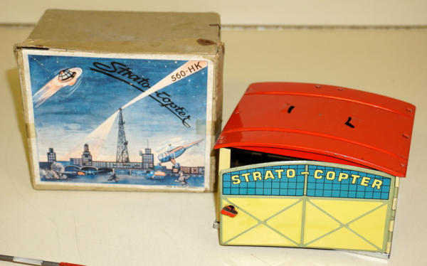 missing the copter and the tower off the hanger, includes a very scarce original box, the parts of the toys that are there are nice, all to go