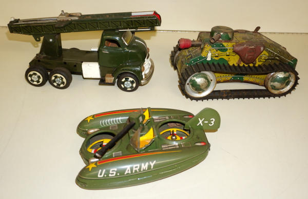 all have play wear, truck is about 12" long, all missing some parts, all to go