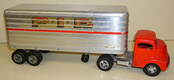 Cab has been repainted, but a poor job, has nice new wheels & tires; trailer is decent original and complete